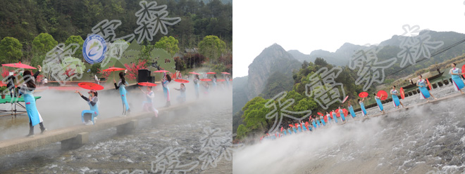 此次森林旅游節(jié)開(kāi)幕式舞美設(shè)計(jì)采用了杭州天雷噴泉設(shè)備有限公司提供的霧森設(shè)備系統(tǒng),為美麗的楠溪江蒙上了一層飄渺虛幻的面紗 。 水霧與舞臺(tái)表演實(shí)現(xiàn)了完美的結(jié)合,受到了在場(chǎng)觀(guān)眾的熱烈好評(píng)。