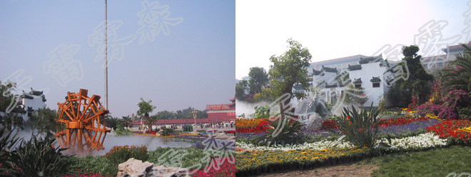 在環保意識增強的今天,人造霧越來越多地走進景觀場景,達到降溫和美觀的效果。人造霧噴景觀有著極大的景觀設計魅力,從自然美景的烘托、自然韻味的營造,到建筑景觀的特殊創意性設計,人造霧噴景觀處處體現著人類文化與自然的融合,人們在其中嬉戲玩樂,幾多游哉,幾多悠哉。滿足了人類回歸自然的愿望和對美的追求。