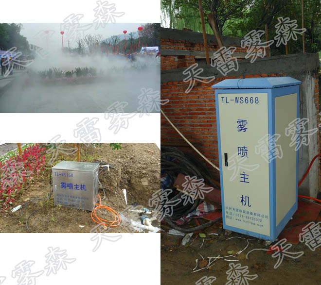 該項目應用了天雷霧森系統TL-WS168全自動高壓噴霧主機,采用紅寶石霧森噴頭,霧化面積約200m2。 該噴霧設備機組由水處理系統、進口高壓系統、PLC自動控制系統、故障自動排除系統,隔音降噪系統,個性化設計的電噴機柜組成
