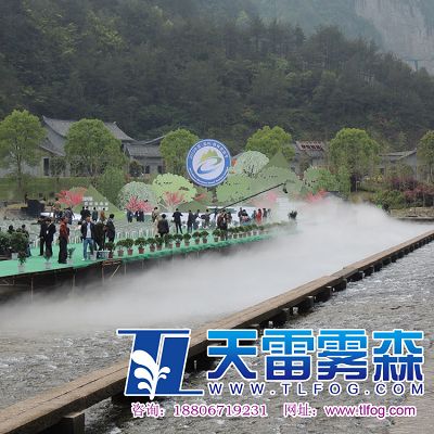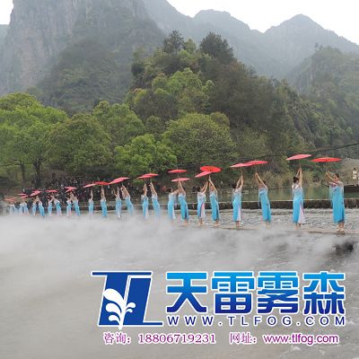 2013中國(溫州)森林旅游節,4月1日上午在永嘉縣金珠瀑文化休閑中心(永嘉書院)舉行開幕式。 此次森林旅游節開幕式舞美設計采用了杭州天雷噴泉設備有限公司提供的霧森設備系統,為美麗的楠溪江蒙上了一層飄渺虛幻的面紗。水霧與舞臺表演實現了完美的結合,受到了在場觀眾的熱烈好評。