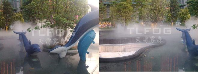 在環保意識增強的今天,人造霧越來越多地走進景觀場景,達到降溫和美觀的效果。人造噴霧景觀有著極大的景觀設計魅力,從自然美景的烘托、自然韻味的營造,到建筑景觀的特殊創意性設計,人造噴霧景觀處處體現著人類文化與自然的融合,人們在其中嬉戲玩樂,幾多游哉,幾多悠哉。滿足了人類回歸自然的愿望和對美的追求。
