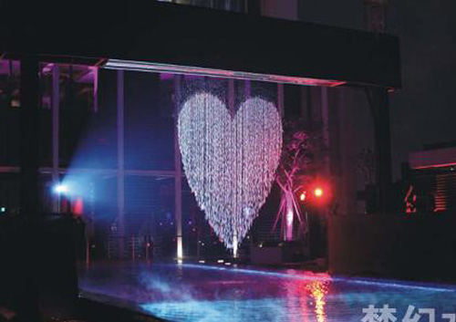 數字水簾,在計算機精確操控下,可以將提前設定好的文字(各種文字)、圖形、logo、標志等體現出來。給人以巨大的視覺沖擊和藝術與高科技完美結合的盛宴。適用于大堂、舞臺、大型展覽說明會。