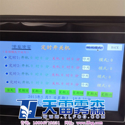 自動控制功能:采用獨特編程系統,進口三菱PLC,進口7寸液晶觸摸屏,內設時間和程序控制,可根據用戶的要求,對其進行工作運轉周期的設定,系統啟止的自動切換、霧形自動組合等,減少了人工操作和維護。